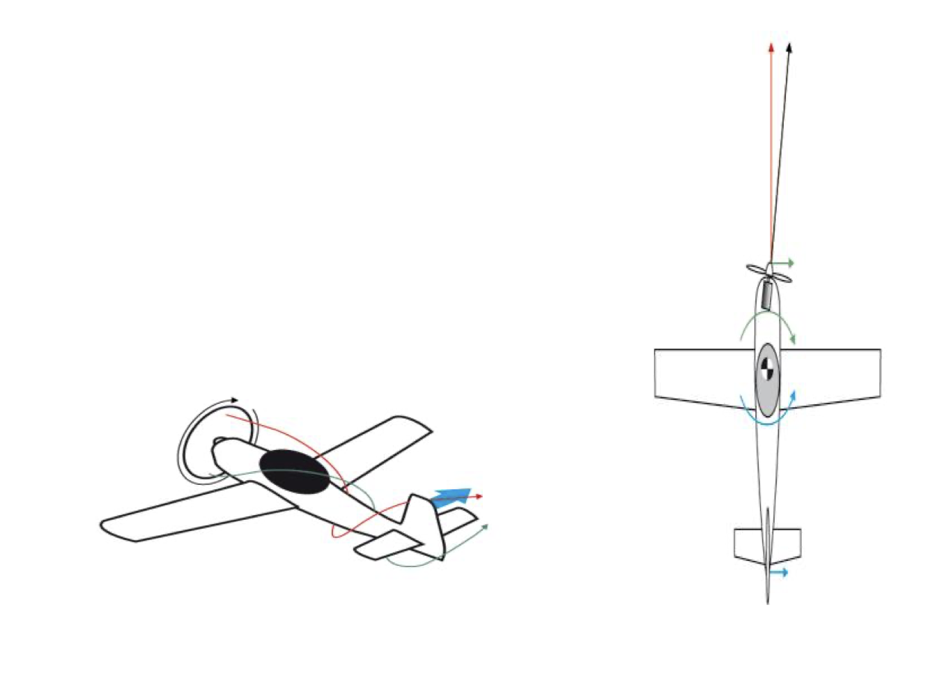 Der Vortrieb, also der schraubenartige Luftstrom der Luftschraube übt zunächst eine als Gegendrehmoment bezeichnete Kraft auf das Modell aus. Das heißt, der laufende Motor bewirkt ein Drehen des Modells um die Längsachse nach links. Das ist aber nicht der eigentliche Grund dafür, dass das Modell Seitenzug benötigt. Vielmehr verursacht der schraubenartige Luftstrom, der sich in einer Schlangenlinie um den Rumpf bewegt, eine Kraft auf das Heck des Modells aus, was eine schiefe Flugbahn über Grund zur Folge hat.